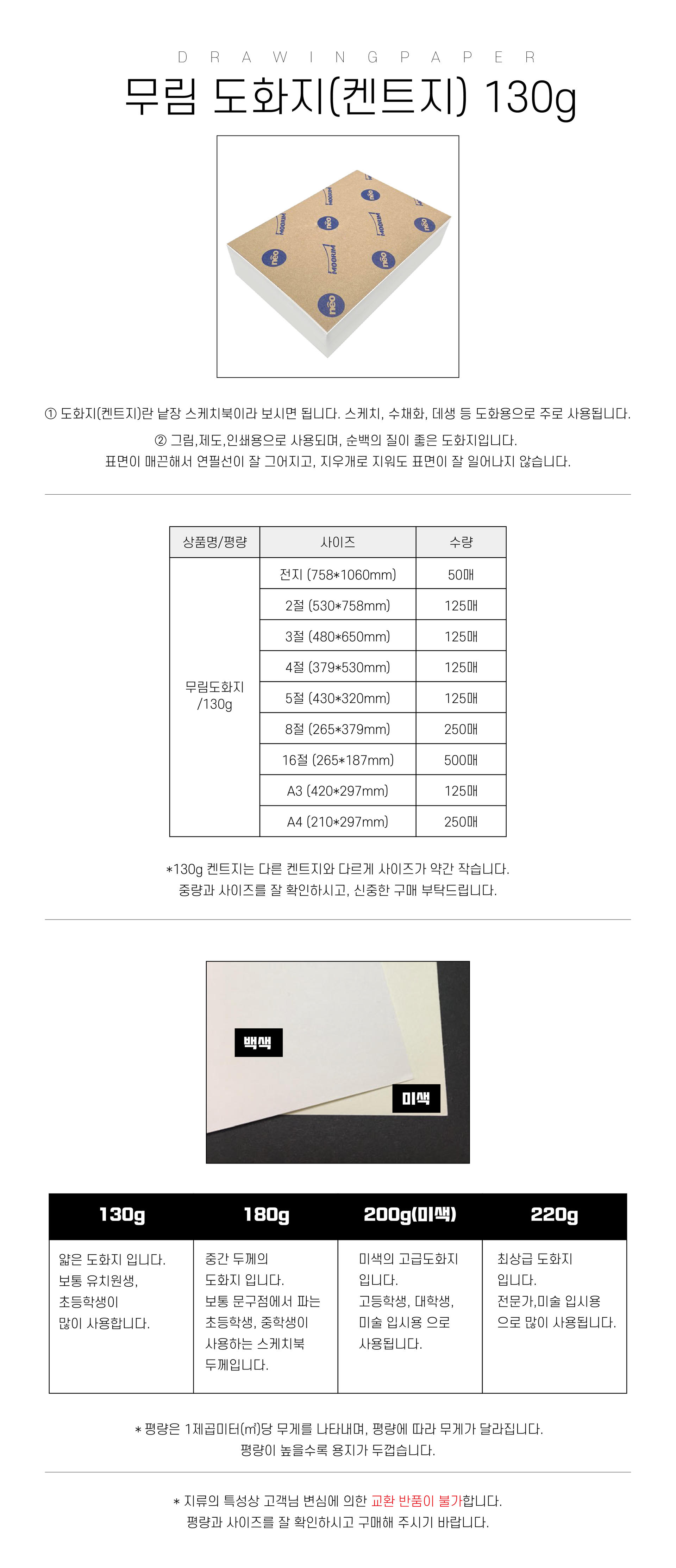 - 지류는 구매자 귀책, 변심으로 인한 교환 및 반품은 절대 불가하오니 구매하실 때, 색상 및 사이즈, 두께, 수량 등을 정확하게 확인하신 후 구매하시기 바랍니다.